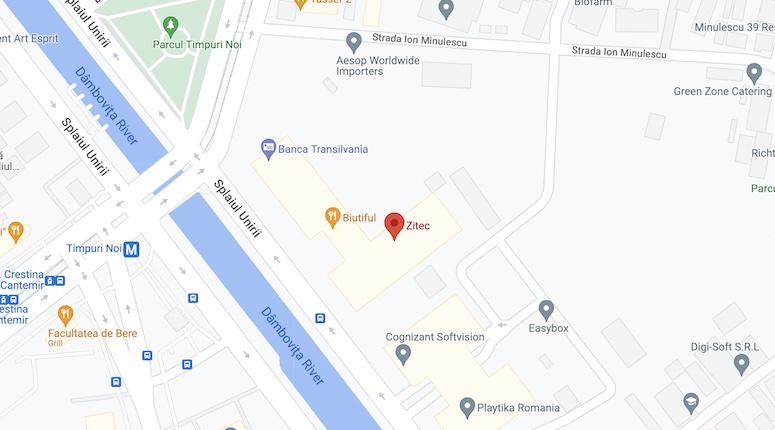Zitec address: 165 Splaiul Unirii, TNO2 Building, 6th floor, Bucharest.
